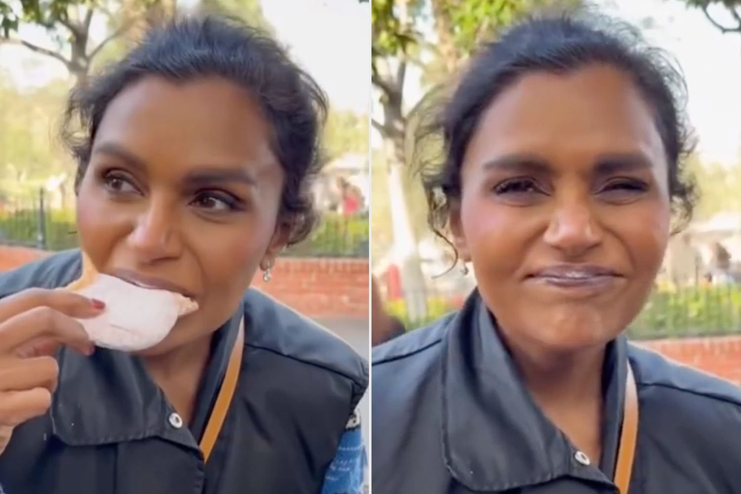 While Kaling’s joy bounced off the screen for the caramel apple, she gave the complete opposite reaction to the peppermint-sugar Mickey beignet, making a sour face and writing “6/10 no comment.”
