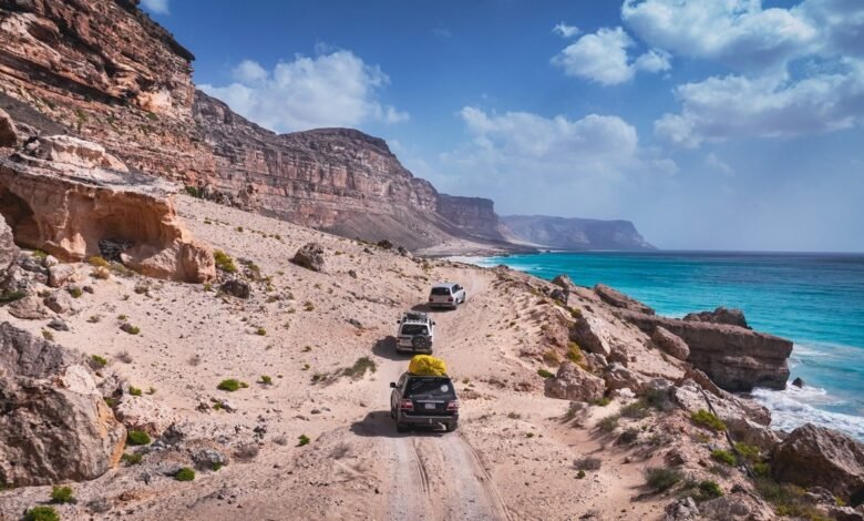 Travelers navigate rugged terrain along Socotra’s stunning coastline.(iStock)