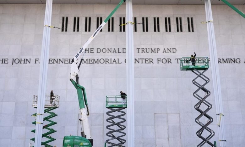 Kennedy Memorial Center for the Performing Arts. New signage featuring Trump’s name went up on the building’s exterior just days after the vote while debate raged over whether an official name change could be made without congressional approval.