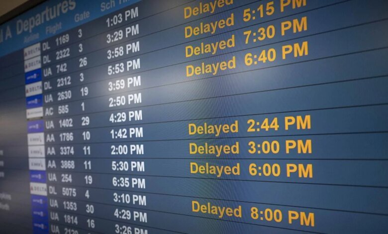 than 7,800 U.S. flights were delayed on Sunday, according to FlightAware, with staffing shortages, bad weather and other constraints contributing to the problems.