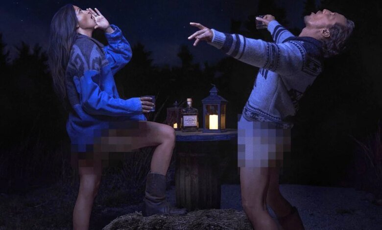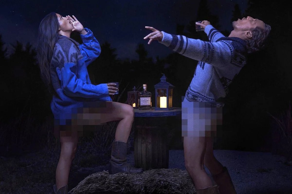 • In celebration of the new drink, the couple could be seen howling at the moon in an exclusive photo — without pants