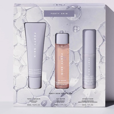 Cleanse, tone, and hydrate your skin with three simple steps. This set is ideal for travel. It's also the perfect introduction to a new skincare routine without the commitment of buying full-price products. The Total Cleans'r removes makeup and cleans the skin without stripping or drying it. Fat Water is the do-it-all toner serum that targets pores and improves darks spots while it brightens, smooths, and fights shine. The Hydra Vizor is a 2-in-1 sunscreen/moisturizer that's lightweight, oily free, and it's truly invisible on all skin tones.