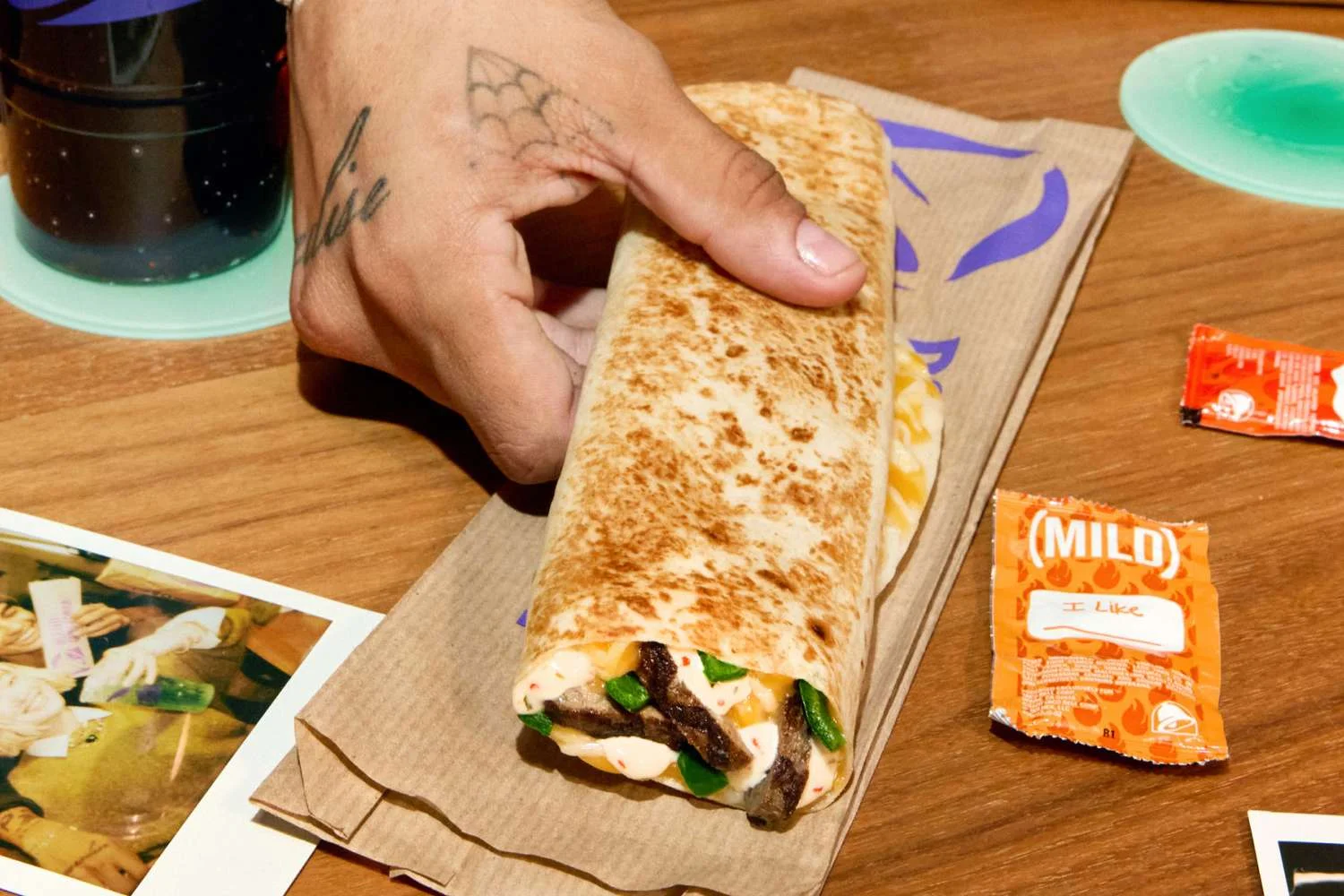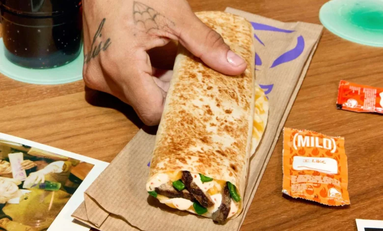 In the quesadilla you’ll find marinated steak, fire-roasted poblano peppers, and a blend of melted cheeses. There’s a drizzle of spicy ranch inside the rolled tortilla too, staying true to Taco Bell’s plan to lean into peak sauciness this year.