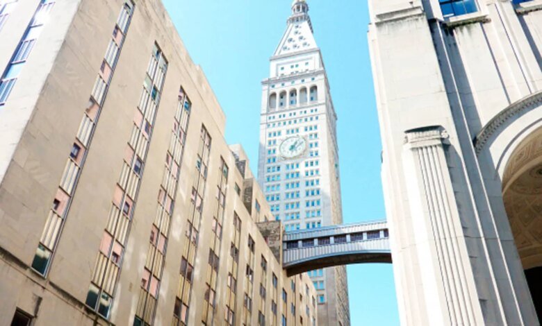 Met Life clock tower and pedestrian bridge, Madison Avenue, New York.