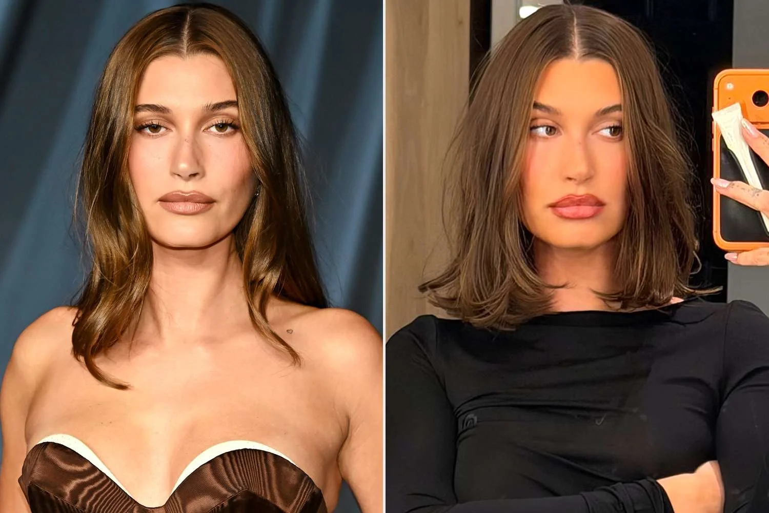revealing Bieber’s “fresh cut” that took her usually long waves into a textured and middle-parted shoulder-length bob.